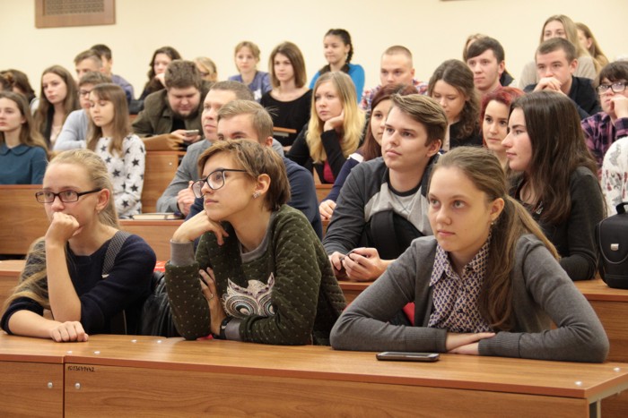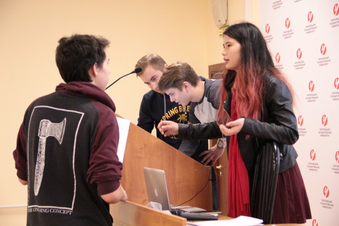 Лекционная аудитория ЧГУ заполнена до отказа: желающих приобщиться к американской культуре оказалось очень много. Среди них – старшеклассники городских школ, студенты и преподаватели ЧГУ. Всё занятие от начала и до конца проходит на английском языке. Тема первой встречи – «American Pop Artists». После небольшой лекции Мэдлин участники получили вопросы для обсуждения. Поучаствовать в дискуссии и высказать своё мнение о современном искусстве мог абсолютно каждый.