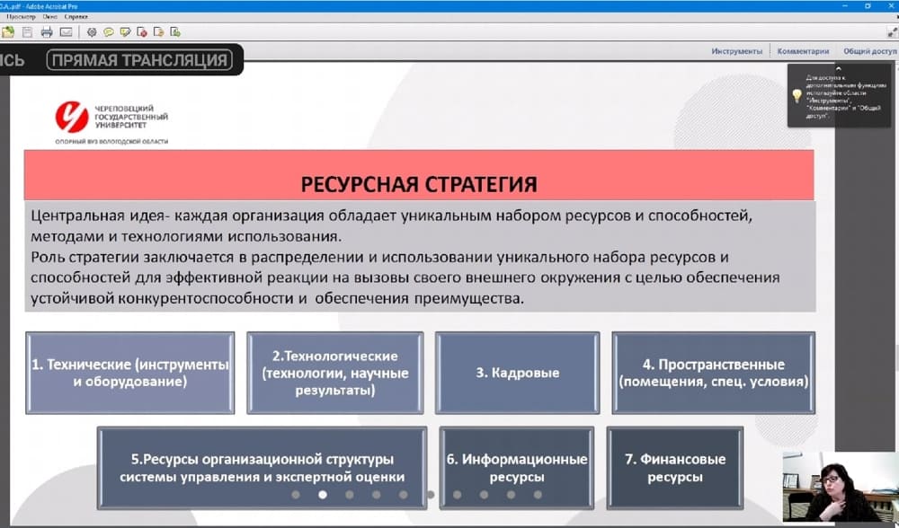 «Среди ресурсов организаций можно выделить: технические (инструменты и оборудование), технологические (технологии, научные результаты), кадровые, пространственные (помещения и специальные условия), ресурсы организационной структуры системы управления и экспертной оценки, информационные и финансовые».