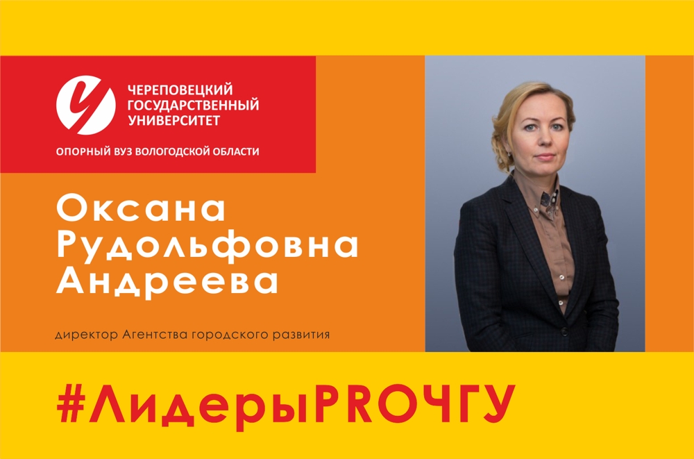 Сегодня героем рубрики «Лидеры PRO ЧГУ» становится Оксана Рудольфовна Андреева, директор Агентства городского развития в Череповце.