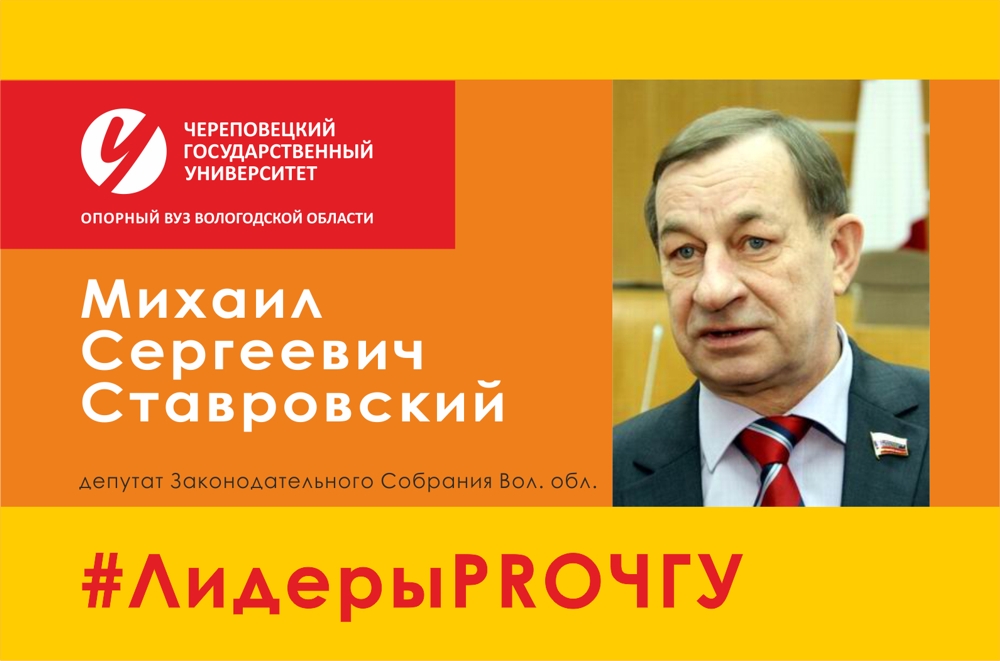 Героем рубрики «Лидеры PRO ЧГУ» становится Михаил Сергеевич Ставровский, депутат Законодательного Собрания Вологодской области, председатель постоянного комитета по экологии и природопользованию.