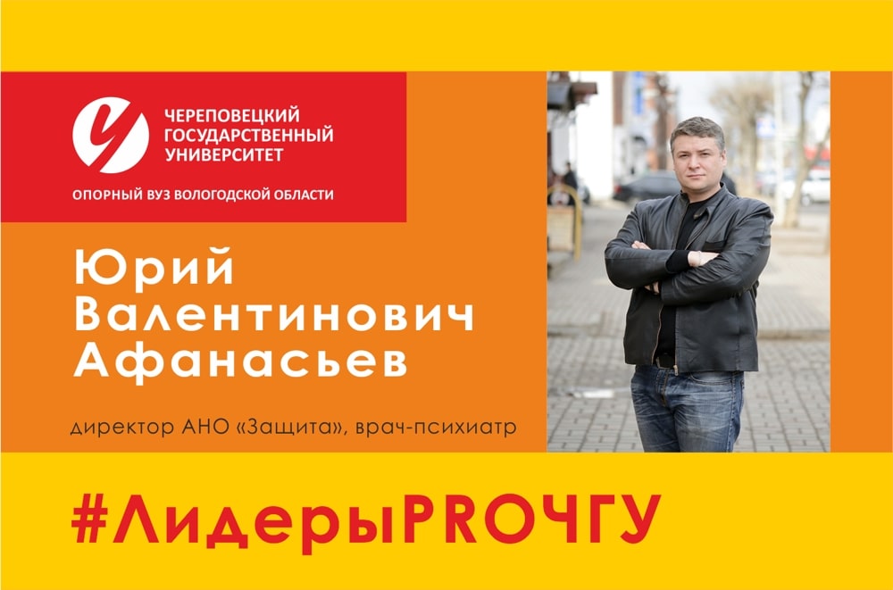 Сегодня героем рубрики «Лидеры PRO ЧГУ» становится Юрий Валентинович Афанасьев, директор АНО «Центр информационной безопасности в сети интернет “Защита”», заведующий детским отделением Вологодского областного психоневрологического диспансера №1.
