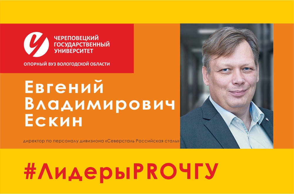Сегодня в рубрике «Лидеры PRO ЧГУ» – Евгений Владимирович Ескин, директор по персоналу дивизиона «Северсталь Российская сталь».