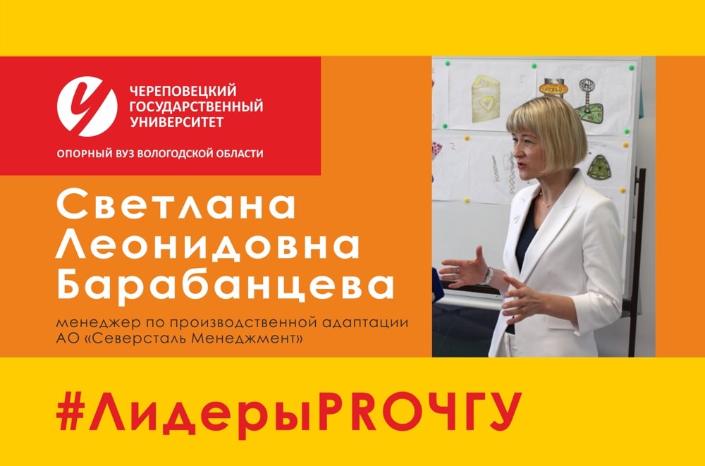 В рубрике «Лидеры PRO ЧГУ» – Светлана Леонидовна Барабанцева, менеджер по производственной адаптации АО «Северсталь Менеджмент».