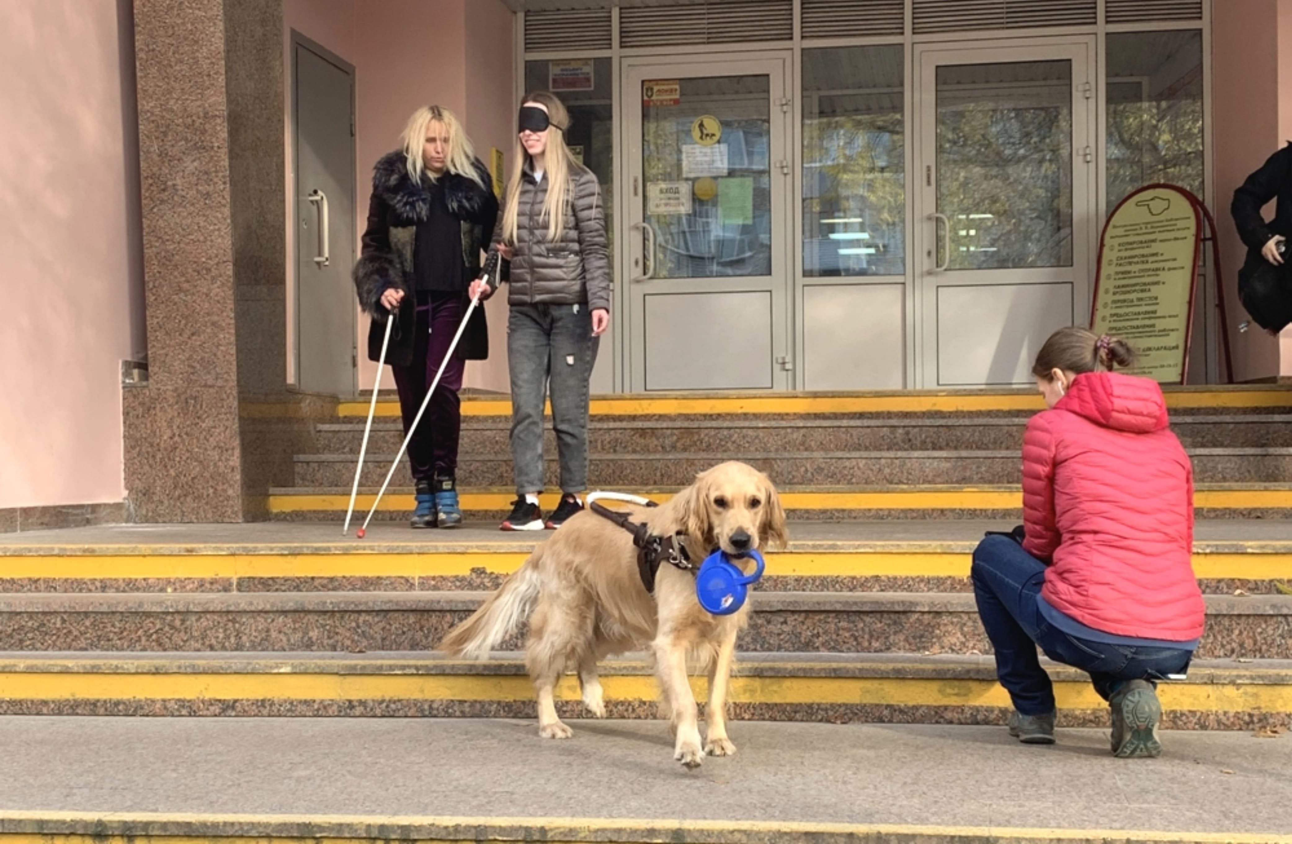 Под руководством Ульяны Михайловой студенты-дефектологи попробовали пройти маршрут без опоры на зрение с помощью трости, собаки-поводыря. После мероприятия волонтеры делились впечатлениями с руководителем СВО «Импульс» Г.М. Галактионовой: «Нам безумно понравилось, было очень интересно и необычно! Спасибо большое, что дали возможность поучаствовать в съемке и почувствовать все на себе».