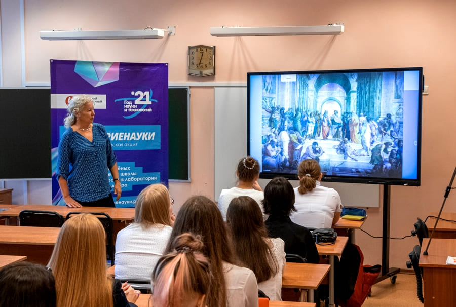 1 сентября Ольга Юрьевна Солодянкина, доктор исторических наук, профессор кафедры истории и философии Череповецкого государственного университета, провела урок науки на тему «Образ ученого в современном мире» для 11 класса Женской гуманитарной гимназии Череповца.