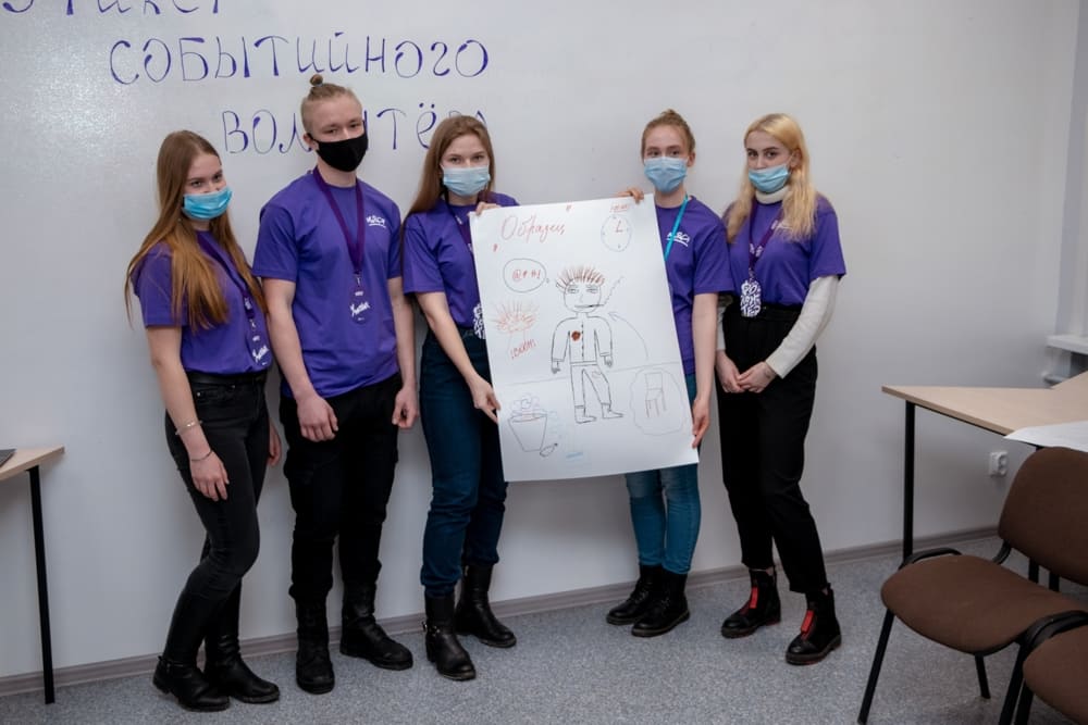 Другая группа посетила тренинг координатора событийного направления волонтерского центра «Мира» Романа Касумова по волонтерскому этикету. Участники познакомились с этикетом в волонтерской сфере, узнали аспекты общения с организаторами, подобрали «идеальный» внешний вид для волонтера и многое другое. Альбом с фотографиями.